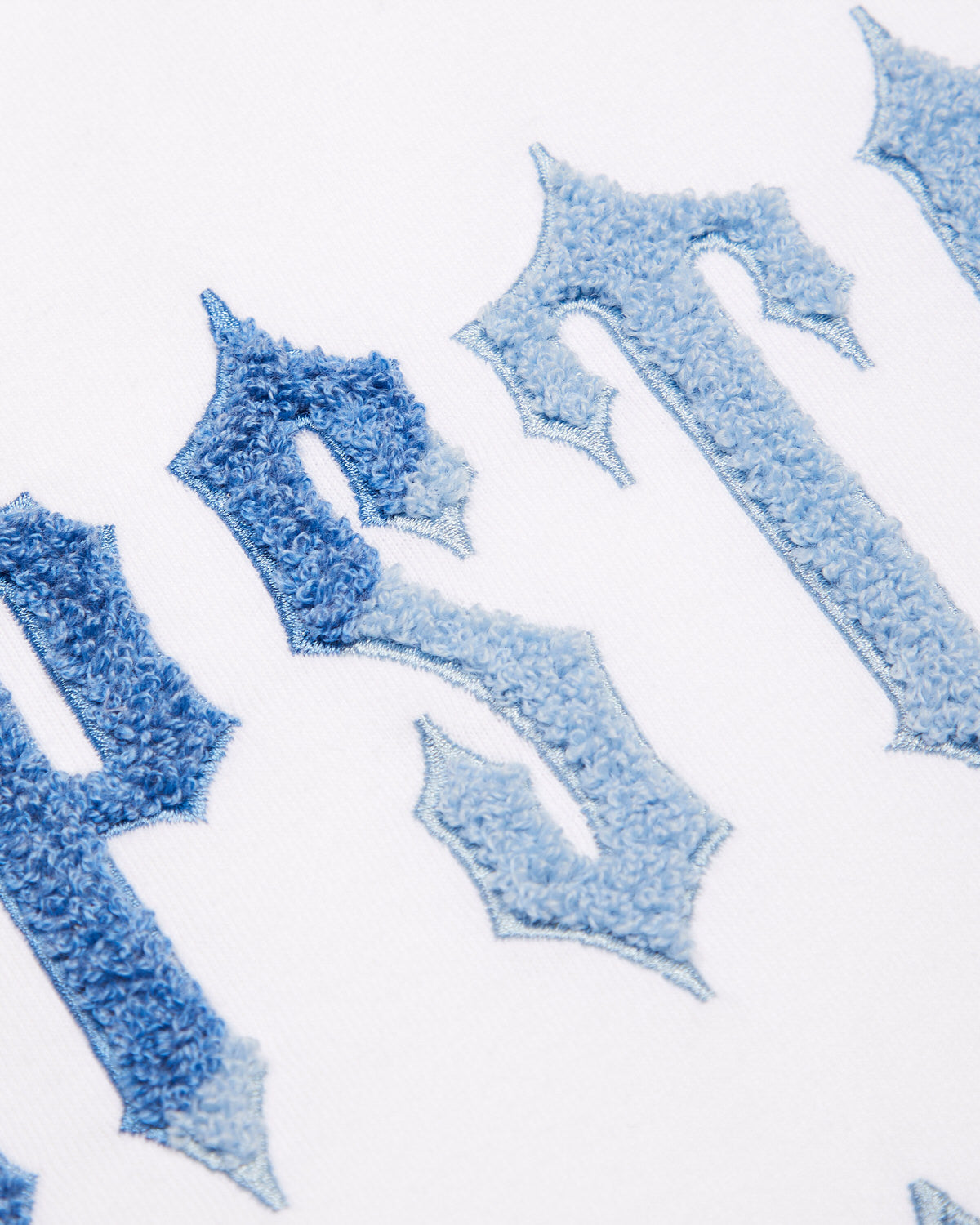 The Trapstar Chenille Decoded Short Set - White/Blue is now available at Side Kicks!