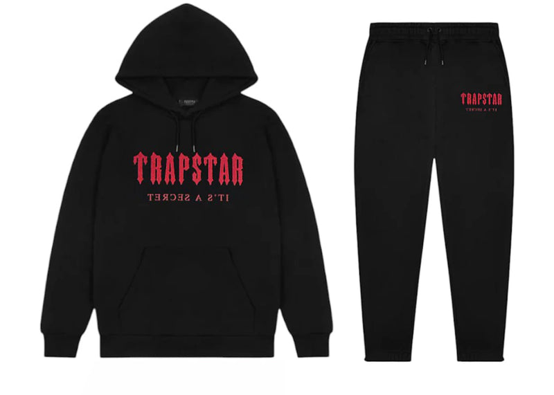 The Trapstar Chenille Decoded Tracksuit Black/Red is now available at Side Kicks!