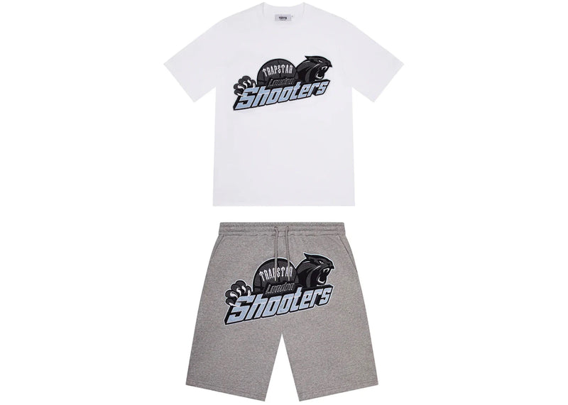 The Trapstar Shooters Short Set White/Light Blue is now available at Side Kicks!