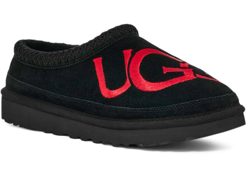 The UGG Tasman Logo Slipper Black / Samba Red is now available at Side Kicks!