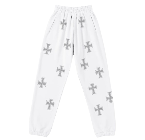 The Unknown London White Rhinestone Joggers is now available at Side Kicks!