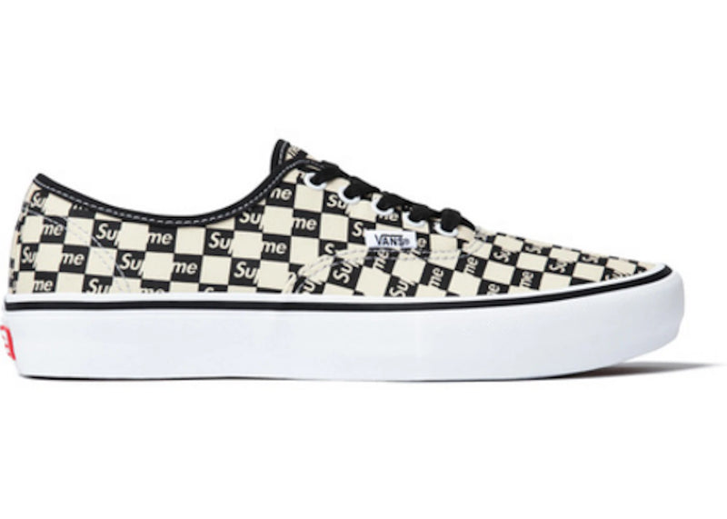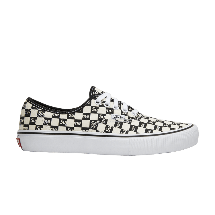 The Vans Authentic Supreme Black Checker Logo is now available at Side Kicks!