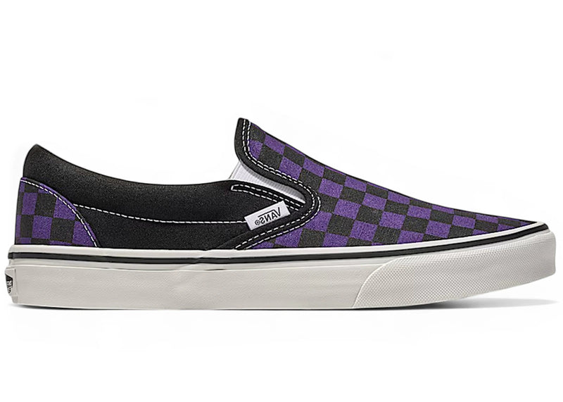 The Vans Classic Slip-On Checkerboard Black Gothic Grape is now available at Side Kicks!
