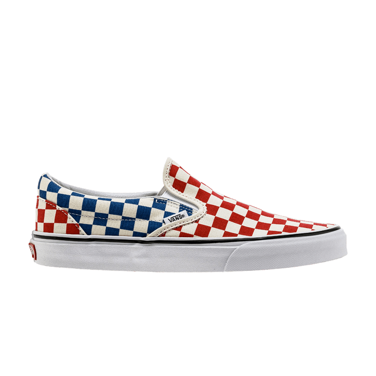 The Vans Classic Slip-On Checkerboard Red Blue is now available at Side Kicks!