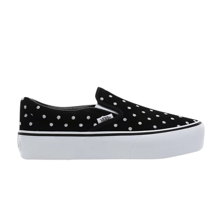 The Vans Classic Slip-On Platform Suede Polka Dot Black White (Women's) is now available at Side Kicks!