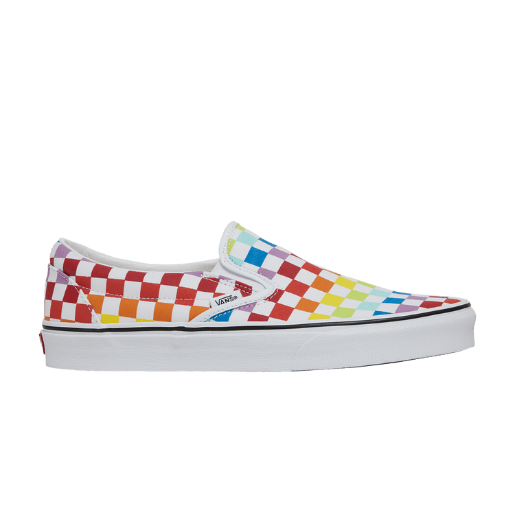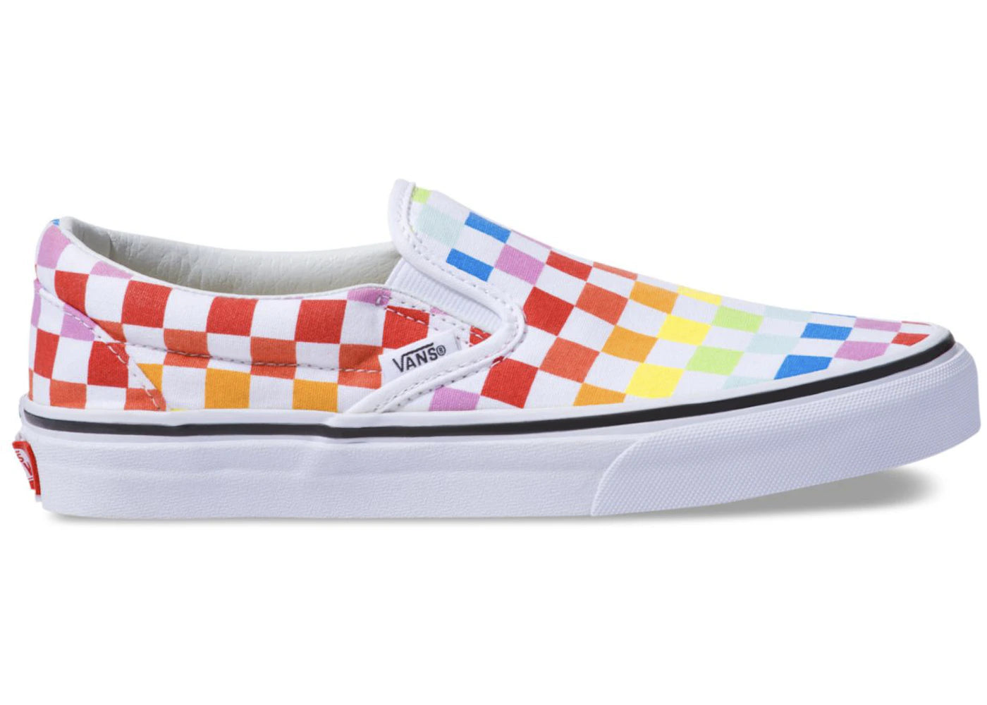 The Vans Classic Slip-On Rainbow Checkerboard is now available at Side Kicks!