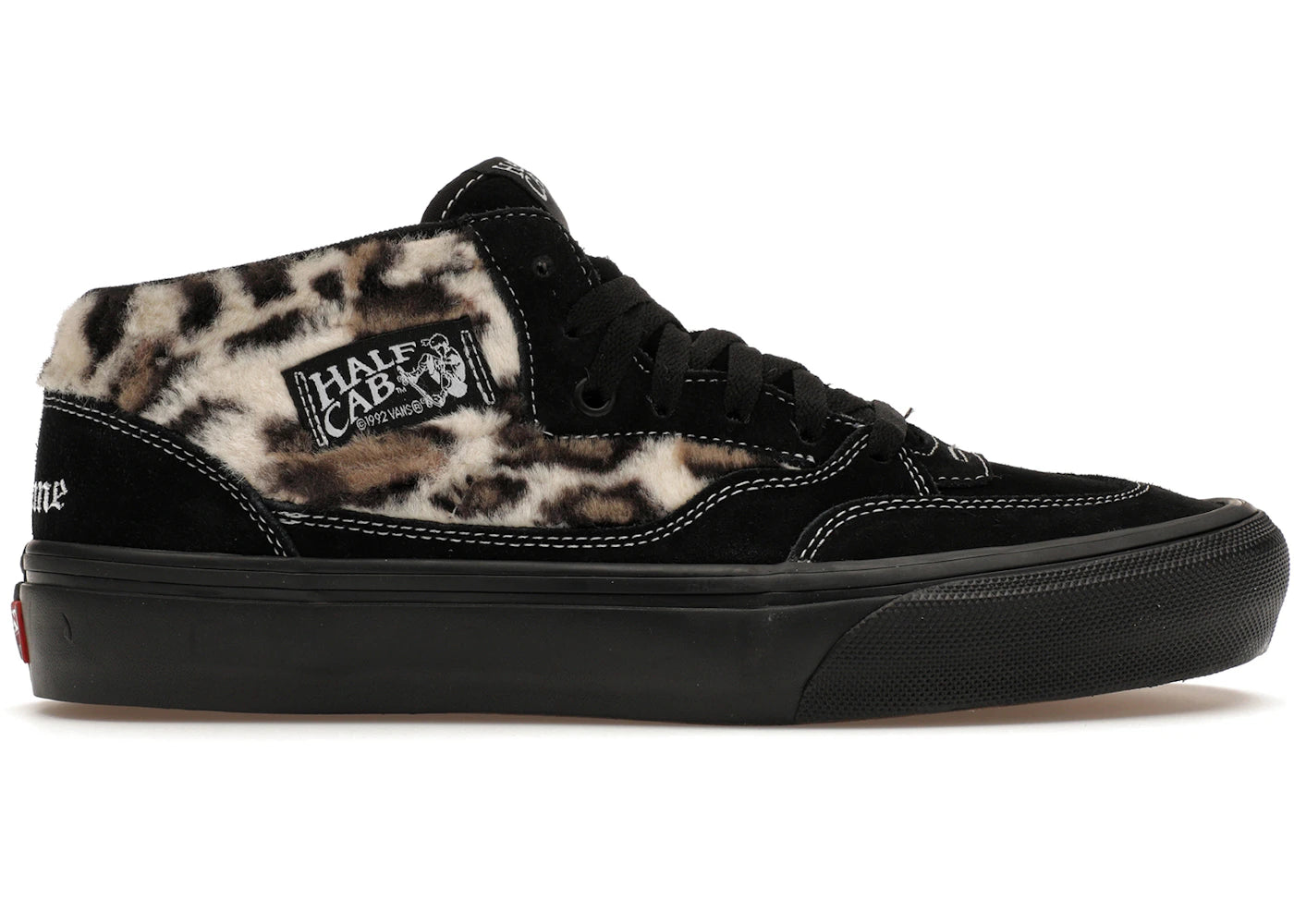 The Vans Half Cab Supreme Leopard Black is now available at Side Kicks!