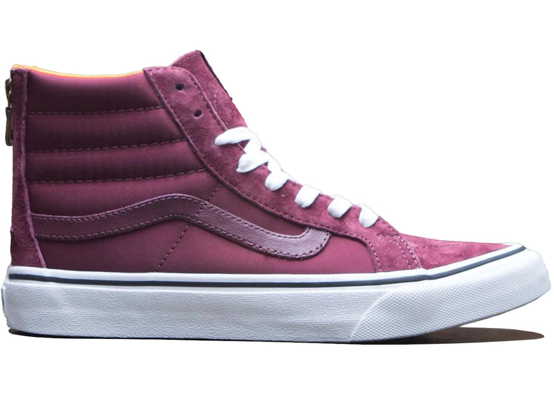 The Vans SK8-Hi Slim Zip Boom Boom Burgundy is now available at Side Kicks!