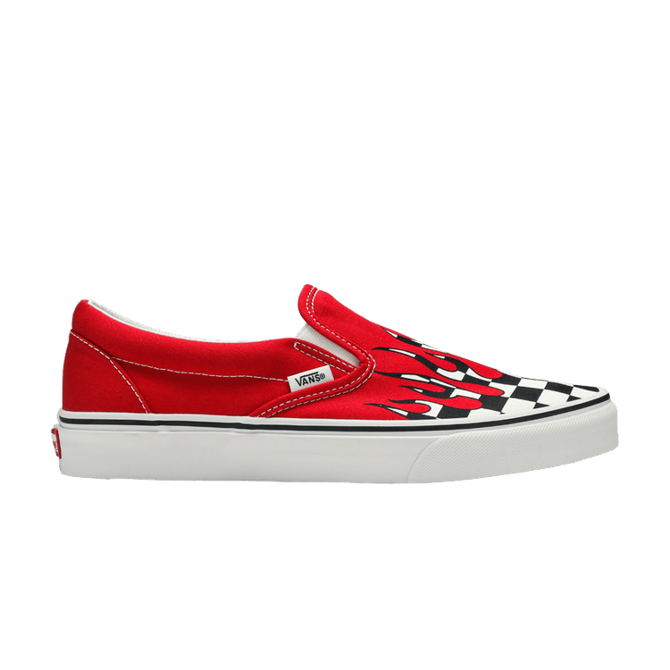 The Vans Slip-On Checker Flame Red is now available at Side Kicks!