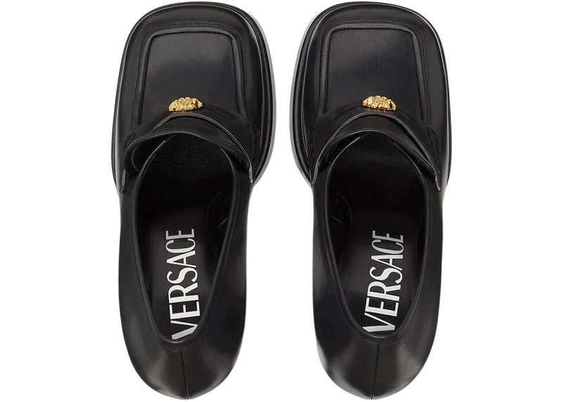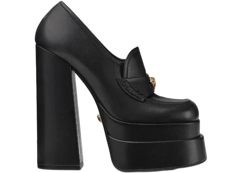 The Versace Aevitas 155mm Platform Loafers Black Leather is now available at Side Kicks!