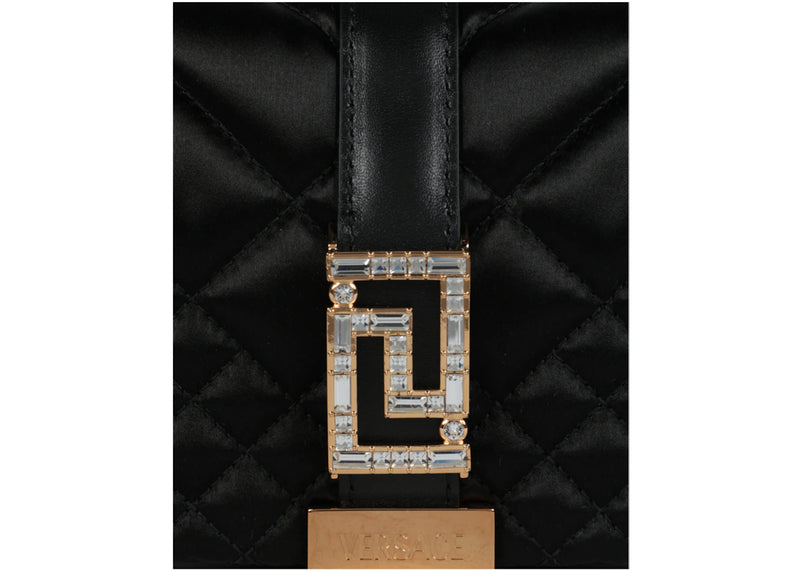 Versace Greca Goddess Quilted Satin Shoulder Bag Black