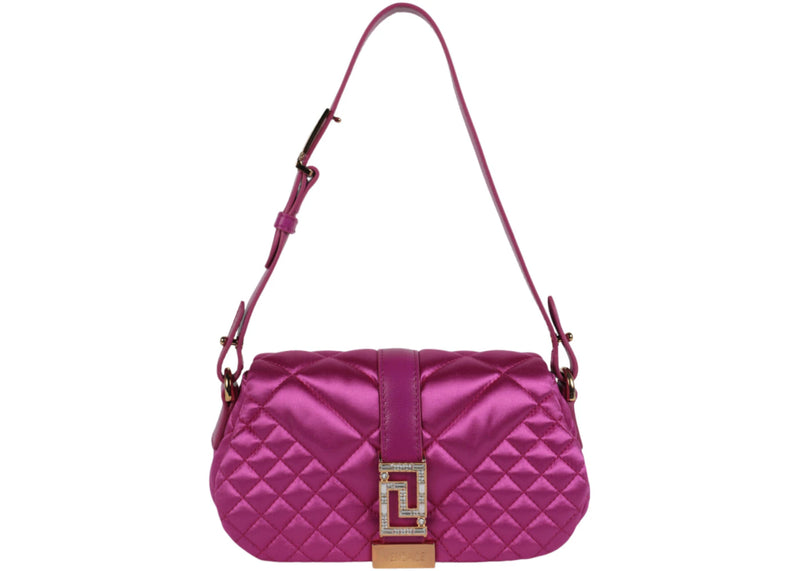 Versace Greca Goddess Satin Shoulder Bag Bright Pink