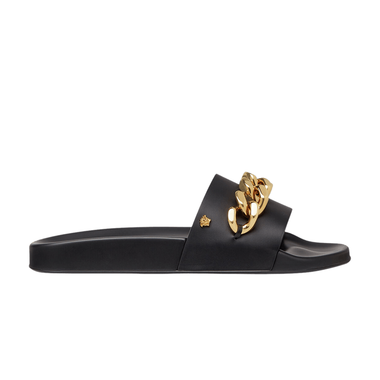The Versace Medusa Chain Slide Black Leather is now available at Side Kicks!