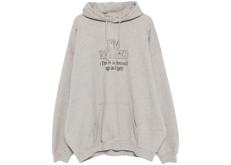 The Vetements I'M Retired Oversized Hoodie Grey Melange is now available at Side Kicks!