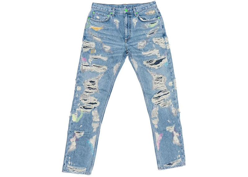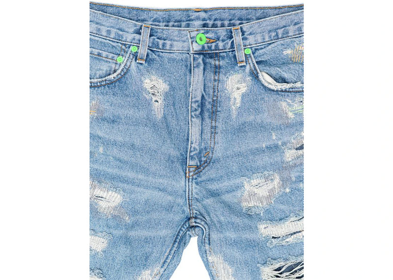 Vlone x Endless Embroidered and Distressed Denim Jeans Neon Green