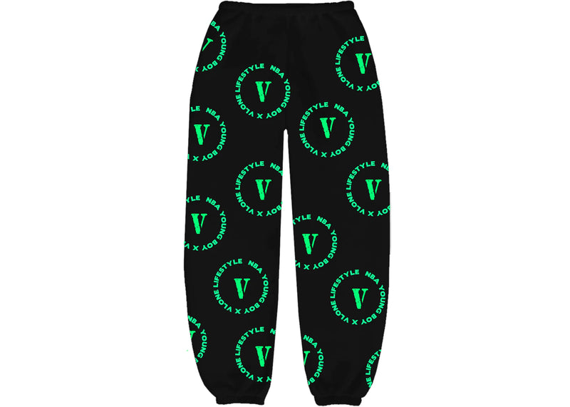 The YoungBoy NBA x Vlone Cross Roads Sweatpants Black/Green is now available at Side Kicks!